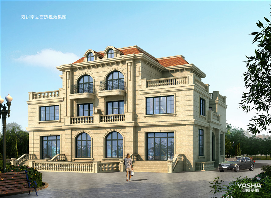 雙拼南立面透視效果圖